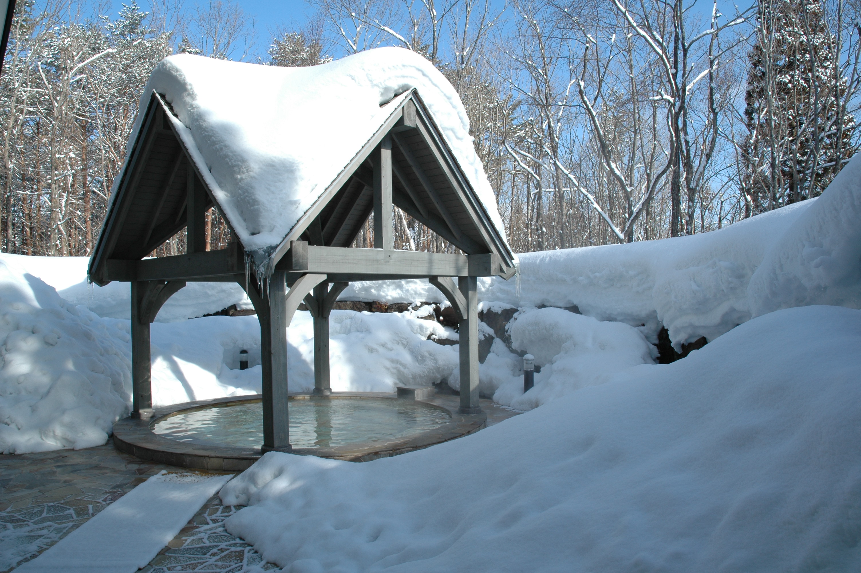 牧歌の里チケット販売所係員にオプション券画面をご提示ください。『入園+入浴セット券』と引換えいたします。